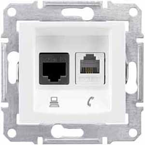 • Розетка телефонная RJ11 + компьютерная RJ45 кат.5е UTP Schneider Electric Sedna Белый
