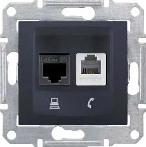 • Розетка телефонная RJ11 + компьютерная RJ45 кат.5е UTP Schneider Electric Sedna Графит