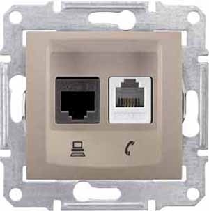• Розетка телефонная RJ11 + компьютерная RJ45 кат.6 UTP Schneider Electric Sedna Титан