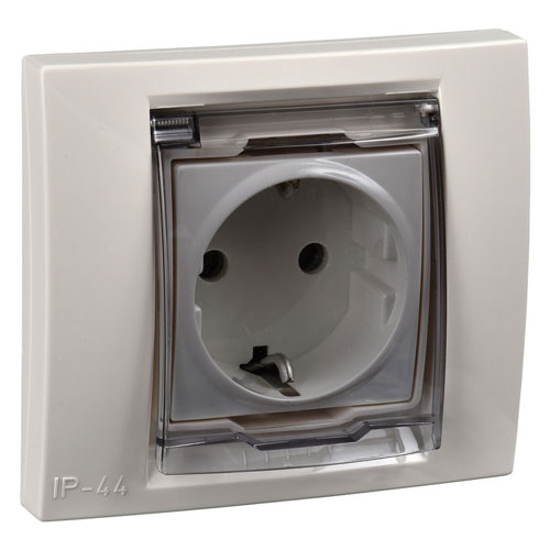 • Розетка 1-ая с заземлением с защитными шторками с прозрачной крышкой литая IP44 Schneider Electric Unica Бежевый