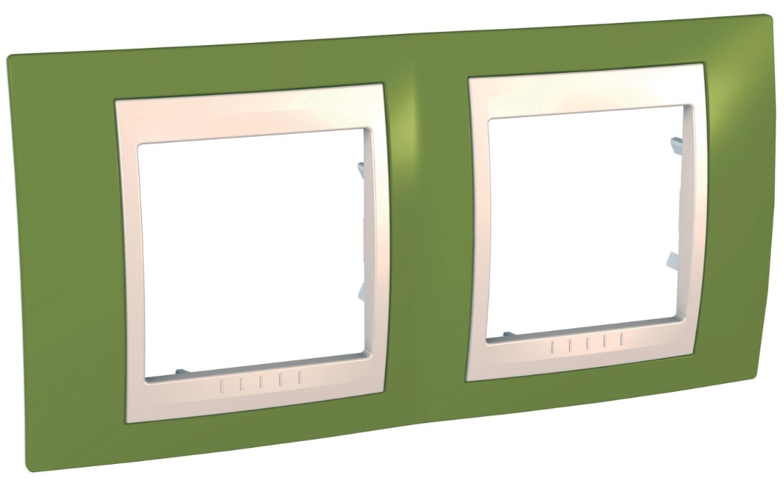 • Рамка 2-постовая горизонтальная Schneider Electric Unica Хамелеон Фисташковый/Бежевый