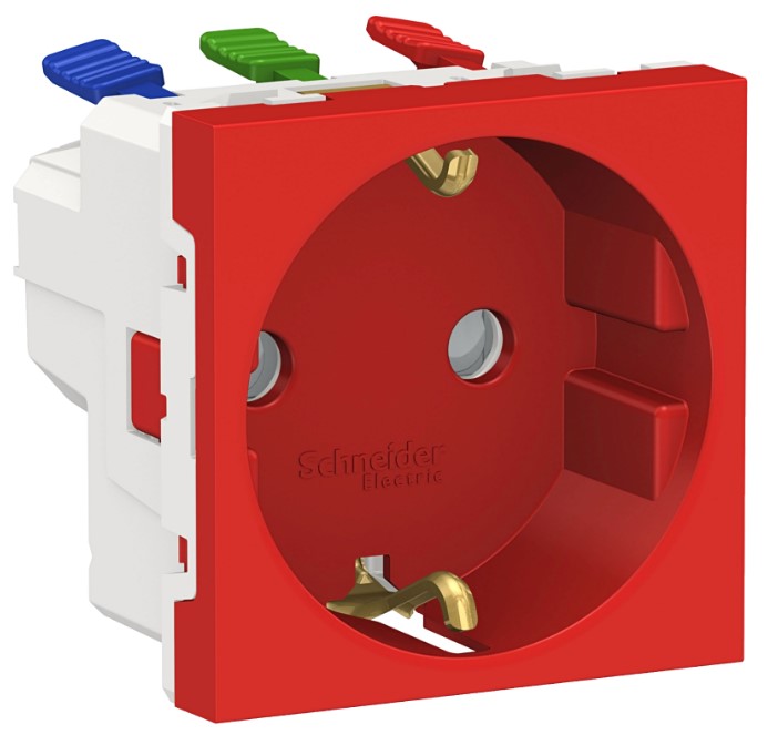 • Розетка с заземлением со шторками с быстрозажимными клеммами 16A 250В 2мод Schneider Electric Unica New Modular Красный