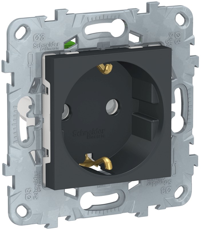 • Розетка с заземлением со шторками с быстрозажимными клеммами Schneider Electric Unica New Антрацит