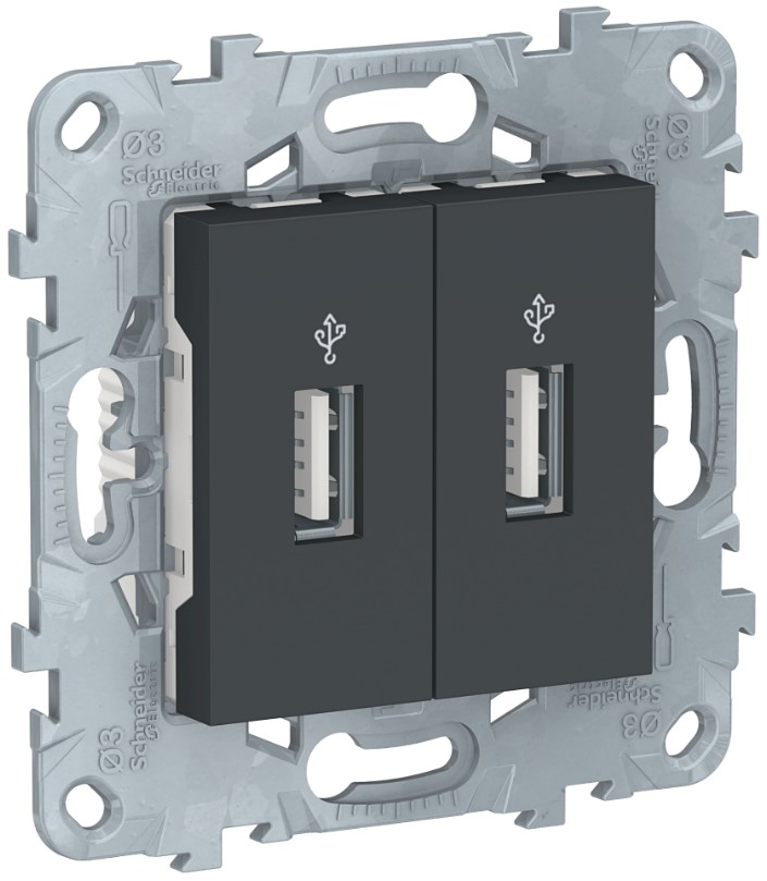 • USB-Коннектор 2-местный Schneider Electric Unica New Антрацит