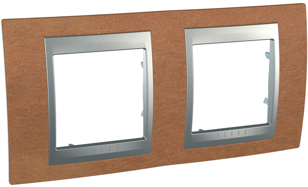 • Рамка 2-постовая Schneider Electric Unica Top Табачное дерево/Алюминий