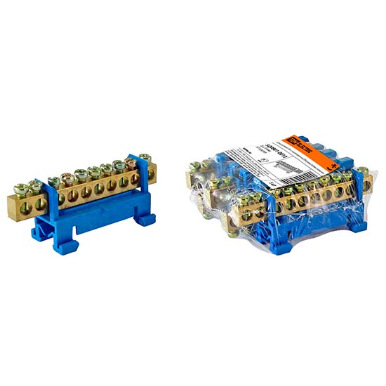 • Шина "N" нулевая с изолятором / большая стойка на DIN-рейку 6x9мм 10 групп 100A TDM