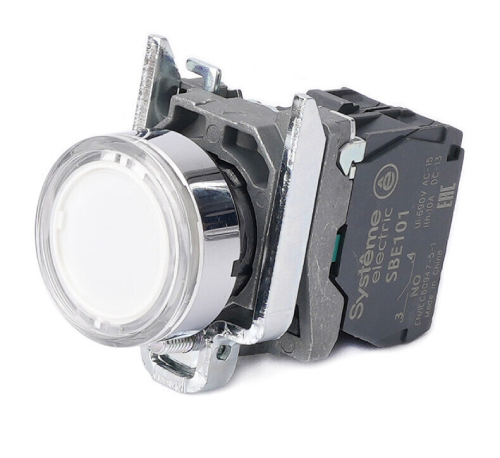 • Systeme Electric Кнопка SB4 с подсветкой в сборе модульная 22мм белая металл 24ВDC 1НО