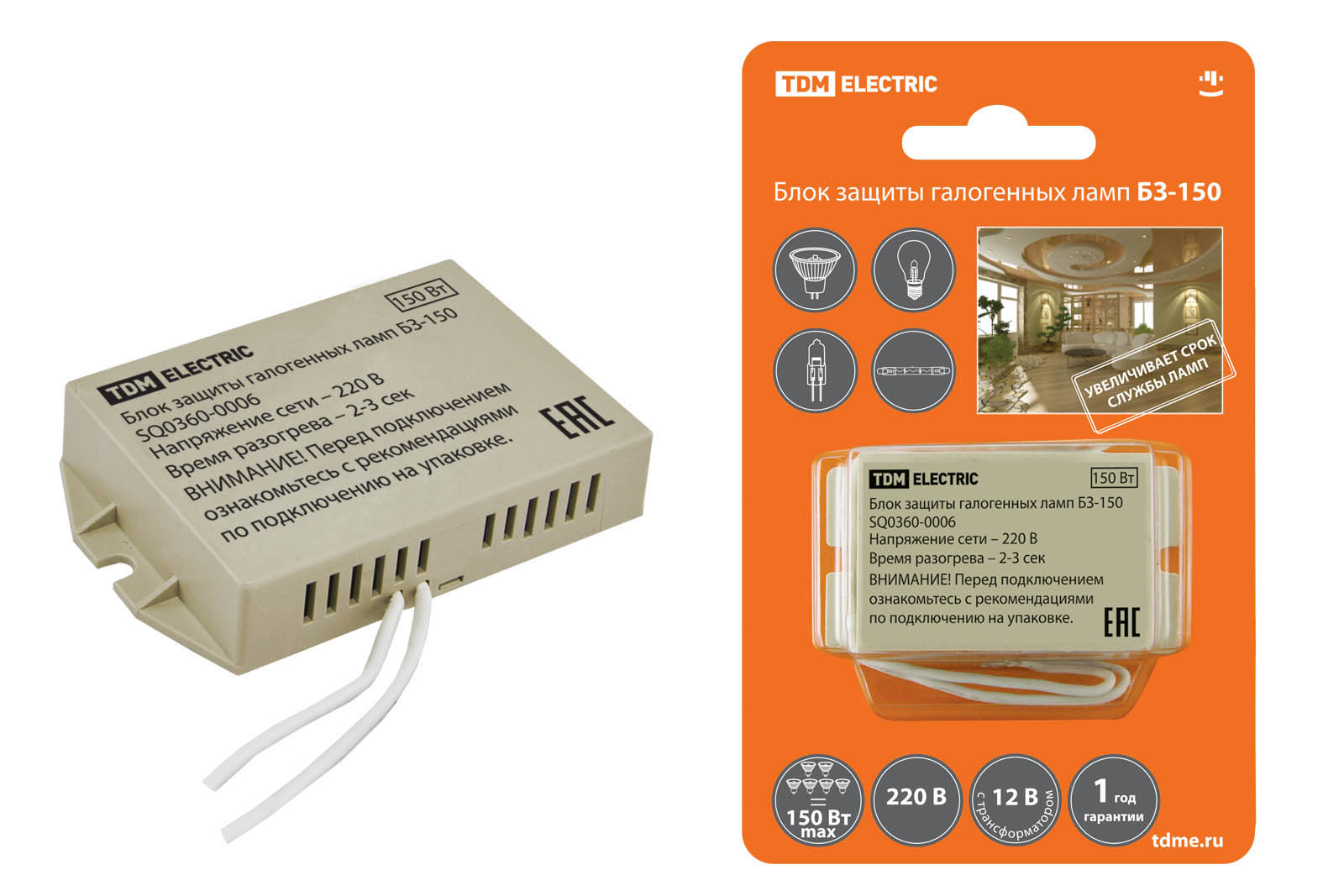 Вы можете купить Блок защиты галогенных ламп 25-150 Вт БЗ-150 TDM в интернет-магазине «РКМ Электро» по цене 30 руб.. На странице имеется подробная информация о товаре:
