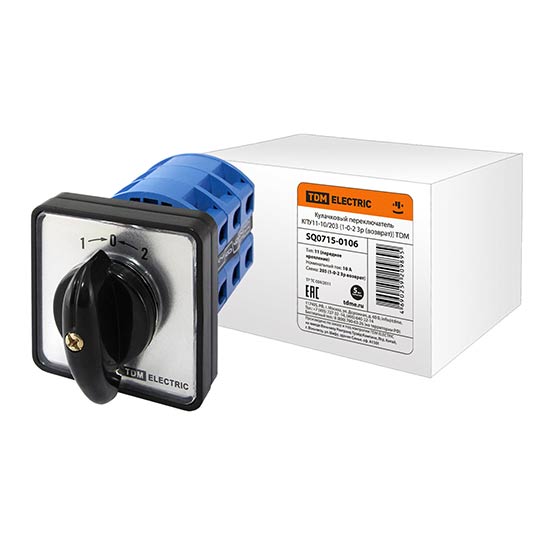 • Переключатель кулачковый (1-0-2 / без перемычки) 3P, 16A, 230/400V, IP40/IP20 / белый/черный TDM КПУ11-16/3031