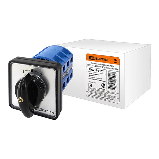 Переключатель кулачковый (1-0-2 / без перемычки) 3P, 16A, 230/400V, IP40/IP20 / белый/черный TDM КПУ11-16/3031 SQ0715-0135