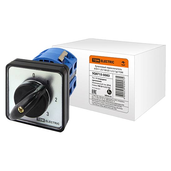• Переключатель кулачковый (0-1-2-3 / с перемычкой) 1P, 25A, 230/400V, IP40/IP20 / белый/черный TDM КПУ11-25/108