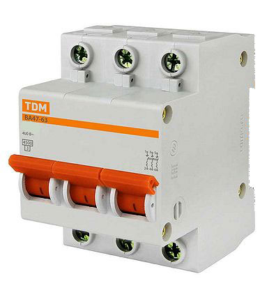 • Автоматический выключатель 3P 63A C 4,5kA TDM ELECTRIC  ВА47-63