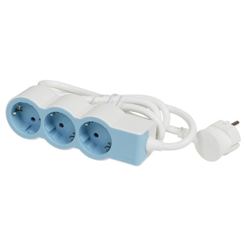 Удлинитель с заземлением 3 розетки с кабелем 1,5 м Legrand Белый/Голубой 694551