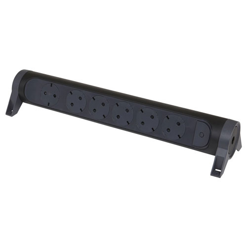 Удлинитель с заземлением 6 розеток без кабеля, с кнопкой включения и поворотным основанием Legrand Черный 694548