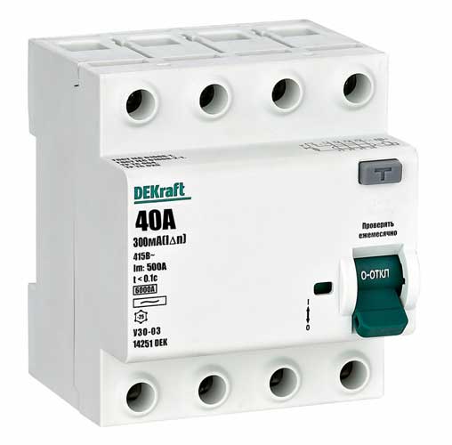• УЗО-03 4P 40А 300mA тип AC 6кА DEKraft ВДТ