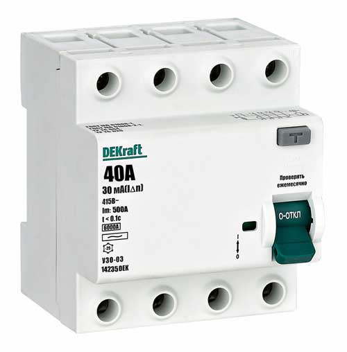 • УЗО-03 4P 40А 30mA тип AC 6кА DEKraft ВДТ