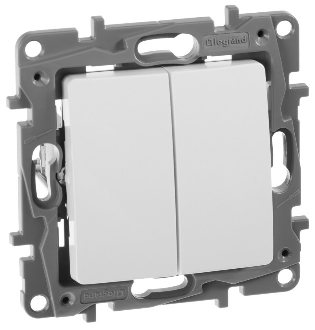 • Выключатель 2-клавишный 10A винтовой зажим Legrand Etika Белый