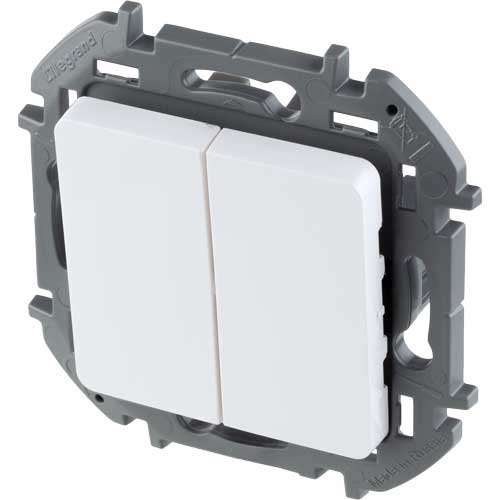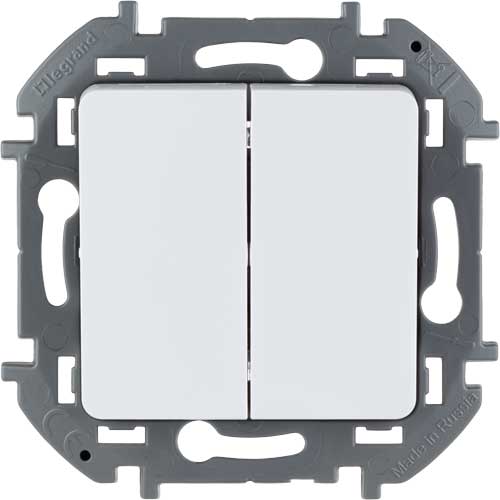 • Выключатель 2-клавишный для скрытого монтажа, 10 А, напряжение ~250В. Legrand Inspiria Белый