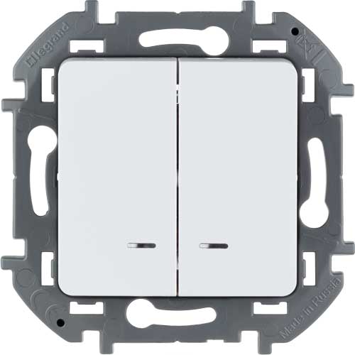 • Выключатель 2-клавишный с подсветкой/индикацией для скрытого монтажа, 10 А, напряжение ~250В Legrand Inspiria Белый