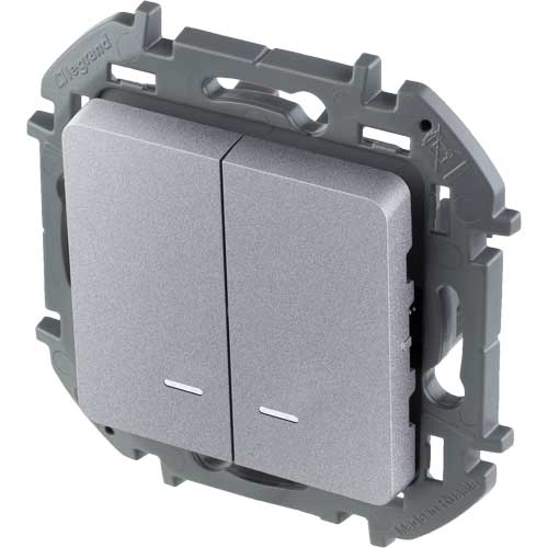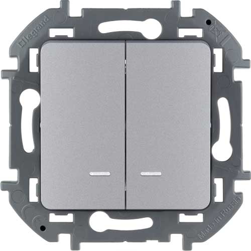 • Выключатель 2-клавишный с подсветкой/индикацией для скрытого монтажа, 10 А, напряжение ~250В Legrand Inspiria Алюминий