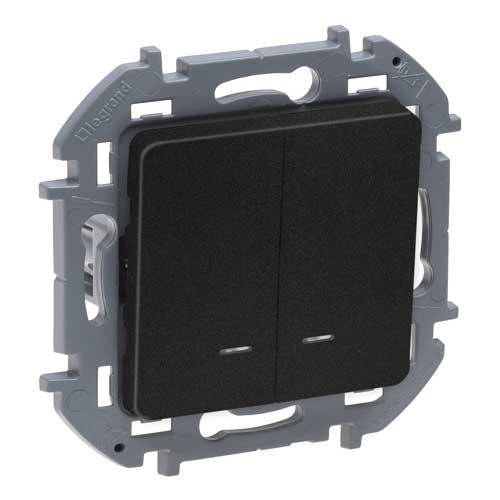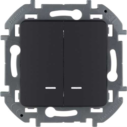 • Выключатель 2-клавишный с подсветкой/индикацией для скрытого монтажа, 10 А, напряжение ~250В Legrand Inspiria Антрацит