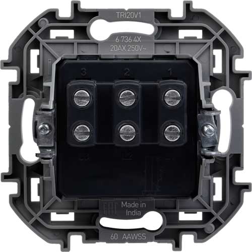 Выключатель 3-клавишный для скрытого монтажа, увеличенный 20 А, напряжение ~250В. Legrand Inspiria Алюминий 673642