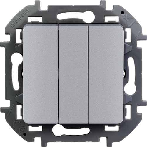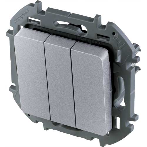• Выключатель 3-клавишный для скрытого монтажа, увеличенный 20 А, напряжение ~250В. Legrand Inspiria Алюминий