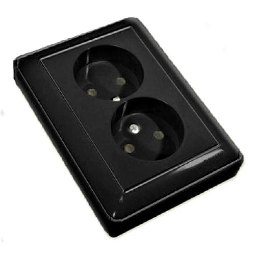 • Розетка 2-ая без заземления в сборе с рамкой Wessen 59 Черный бархат