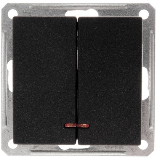 • Выключатель 2-клавишный (схема 5) с индикацией 16A Wessen 59 Черный бархат