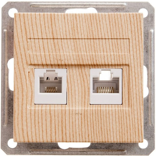Розетка компьютерная 2-ая RJ45 кат.5e Wessen 59 Сосна RSI-251KK5E-7-86