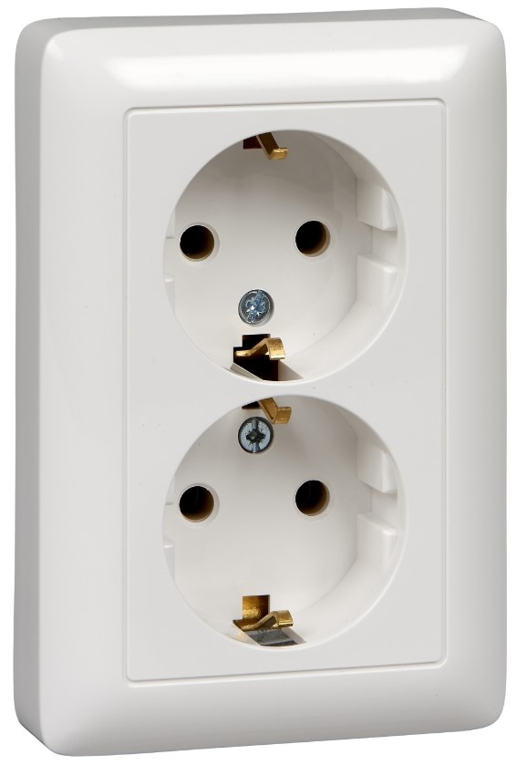 • Розетка 2-ая без заземления 16A изолир. плата накладная в сборе Wessen Хит Белый