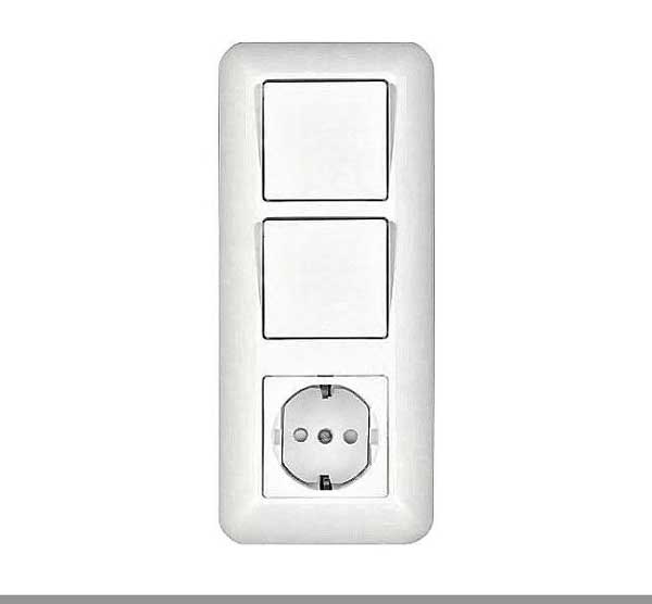 Блок Розетка с/з с з/ш + Выкл. 1-кл + Выкл. 2-кл скрытой установки 53мм Wessen Прима белый BK2VR-008A-B