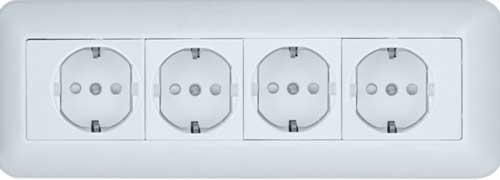 Розетка 4-ая с заземлением с з/ш 16A монтаж. плата накладная в сборе (опт) Wessen Прима Белый RA16-411M-B