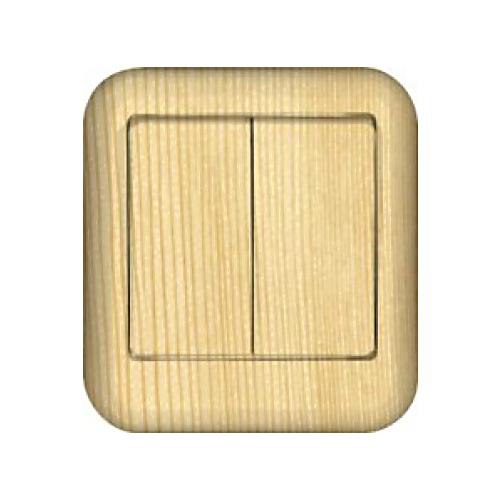 • Выключатель 2-клавишный 10A изолир. плата накладной в сборе (DIY) Wessen Прима Сосна