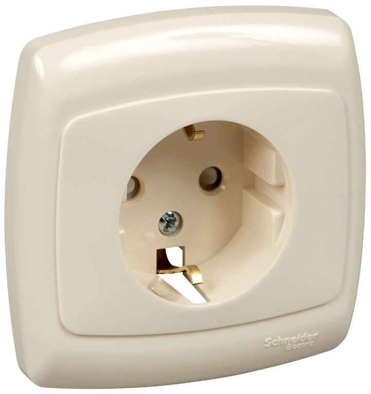 • Розетка 1-ая с заземлением 16A скрытой установки в сборе Wessen Рондо Слоновая кость